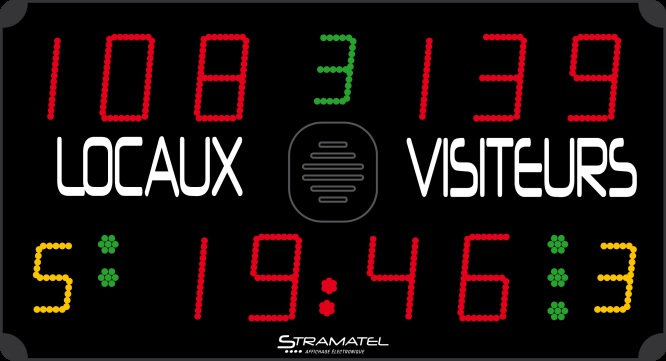 Afficheur 24 sec : simple ou 4 faces selon niveau FIBA