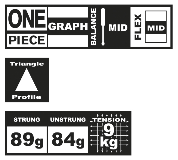 One-Piece, 100% Graphite, Mid balanced, Tapered Profile, mid Shaft flexibility, 84g non cordée, 89g cordée, multifile Galaxy-String, Couleur : noir-orange, Allround.