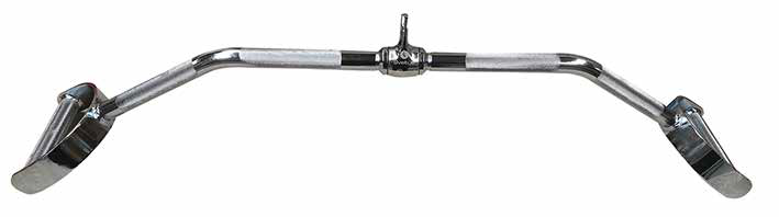 Accessoire pour machine à câble et à poulie. Grâce à sa prise large et ses poignées en extrémité, cette barre propose différentes préhensions pour le travail de la partie latérale des dorsaux.
