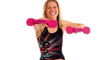 Beflex pour la pratique de l’aquagym. Il s’utilise comme des poids à tenir en main.