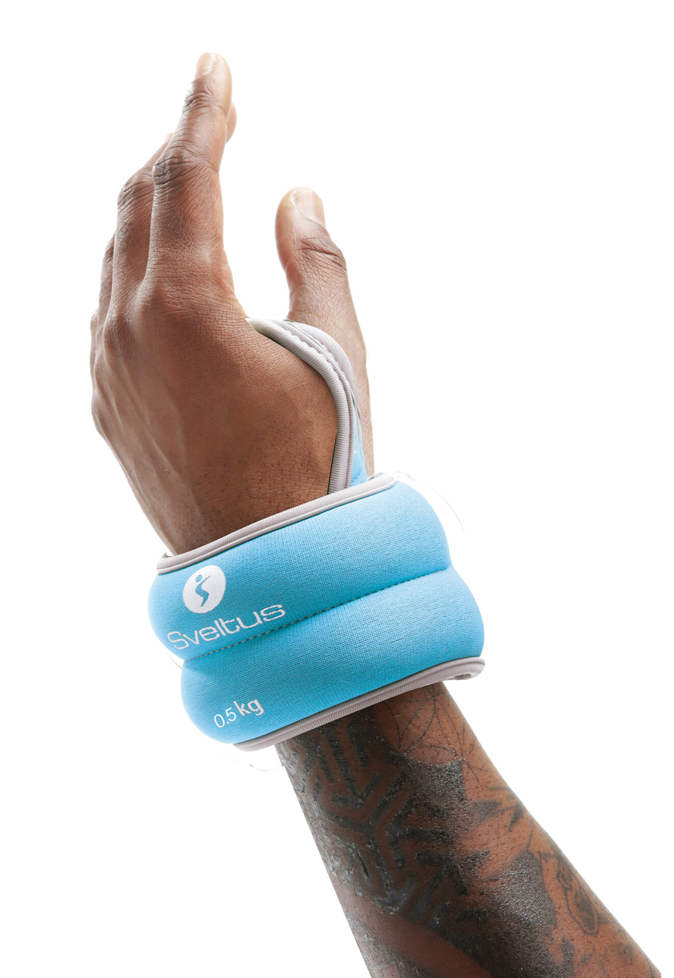 Bracelets lestés avec système d’attache par scratch pour s’adapter à toutes les tailles.