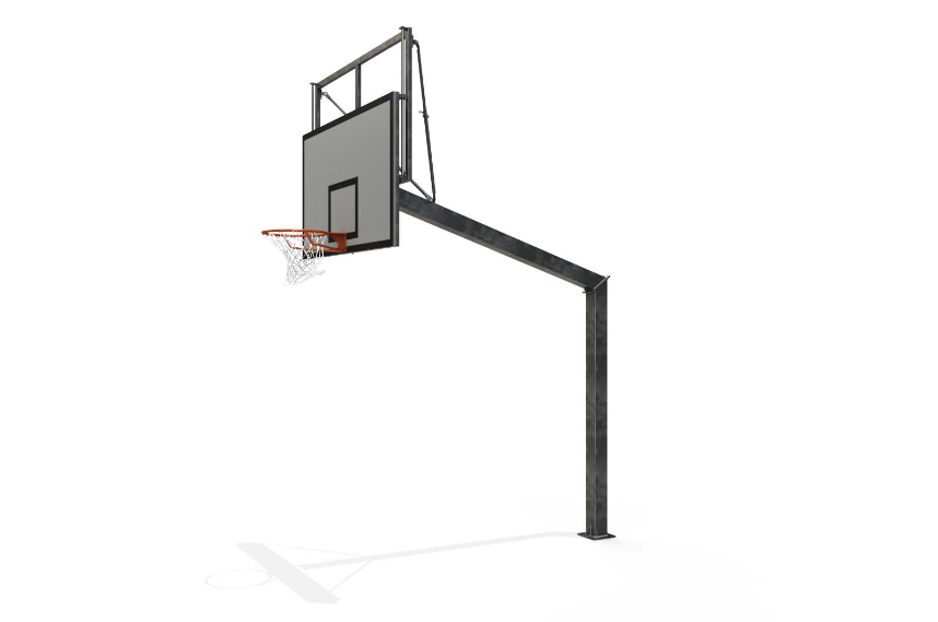 • But en tube acier carré 140 x 140 mm – Mât galvanisé à chaud assemblé en deux parties par 6 boulons – Déport 2,25 m – Hauteur du cercle réglable renforcé : 2,60 m ou 3,05 m