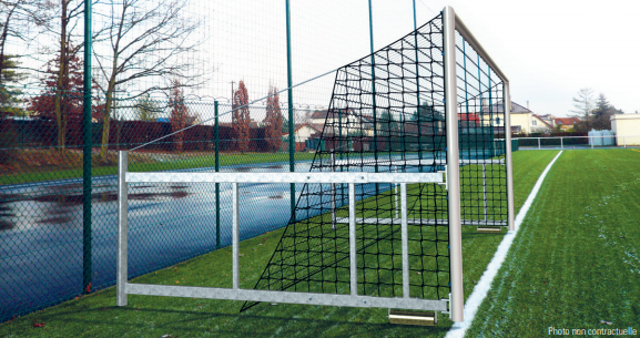 BUTS FOOTBALL À 8 JOUEURS ALUMINIUM CAMP NOU 3 – REPLIABLES PROFILÉ ROND Ø 102 mm – PROFONDEUR RÉGLABLE DE 2170 À 3600 mm