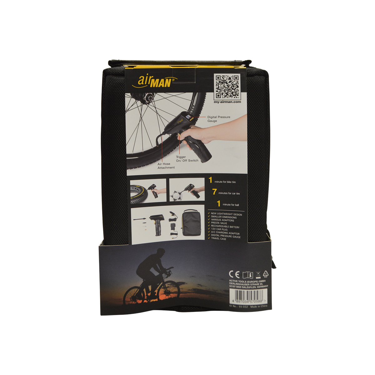 Fonctionne avec batterie (9,6 V – pression 10 Bar) ou peut-être directement branché sur l’allume cigares d’une voiture (12V).