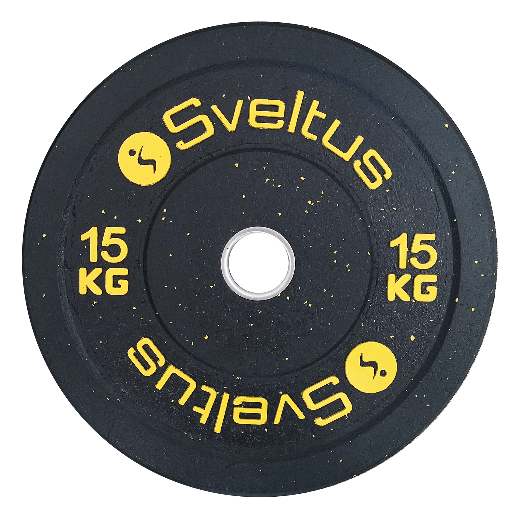 Poids en caoutchouc très robuste pour la pratique d’exercices à chocs comme l’haltérophilie ou le cross training.