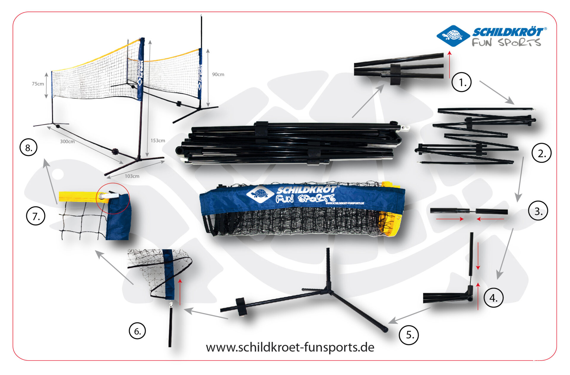 Filet autoportant, pas de fixation au sol, donc idéal pour une utilisation en intérieur.