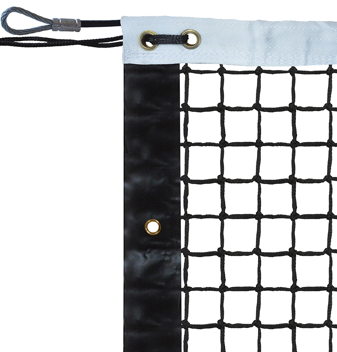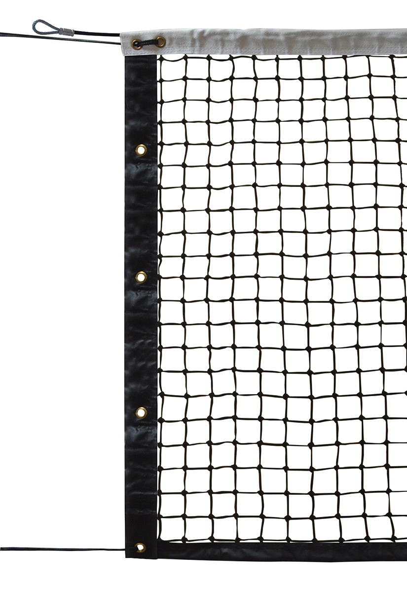 Filet de tennis, dimensions : 12,70 x 1,07 m. Tressé PE* avec noeuds.