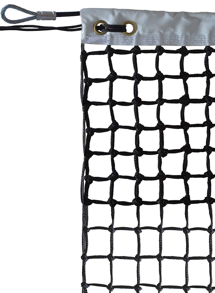 Filet de tennis, dimensions : 12,70 x 1,07 m. Tressé PE* avec noeuds.
