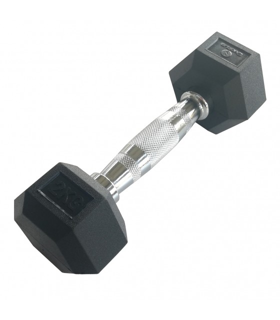 Sa forme hexagonale évite le roulement au sol (6 faces anti-roulis). Son revêtement, en caoutchouc durable et résistant, protège des chocs et réduit le bruit d’impact.
