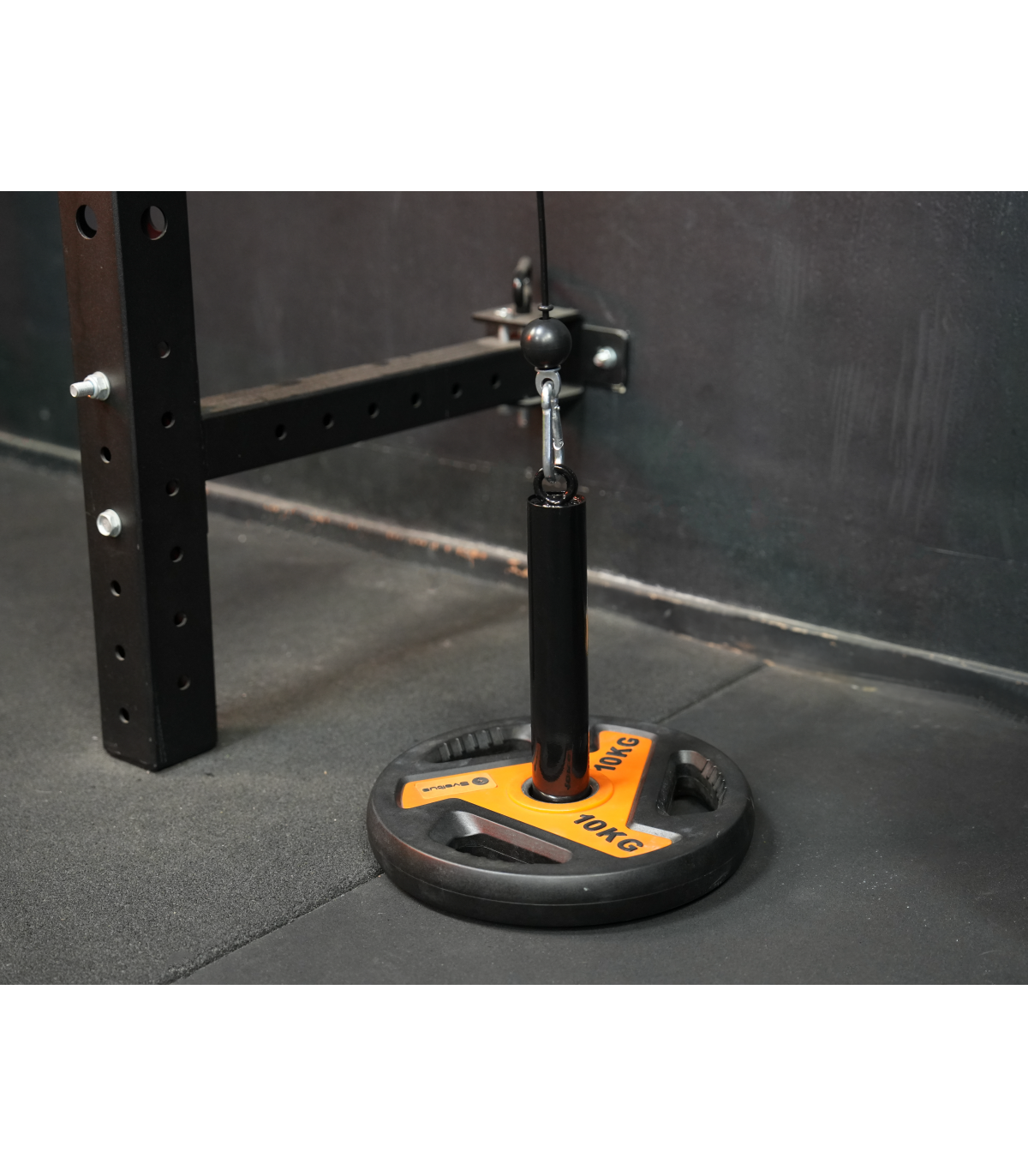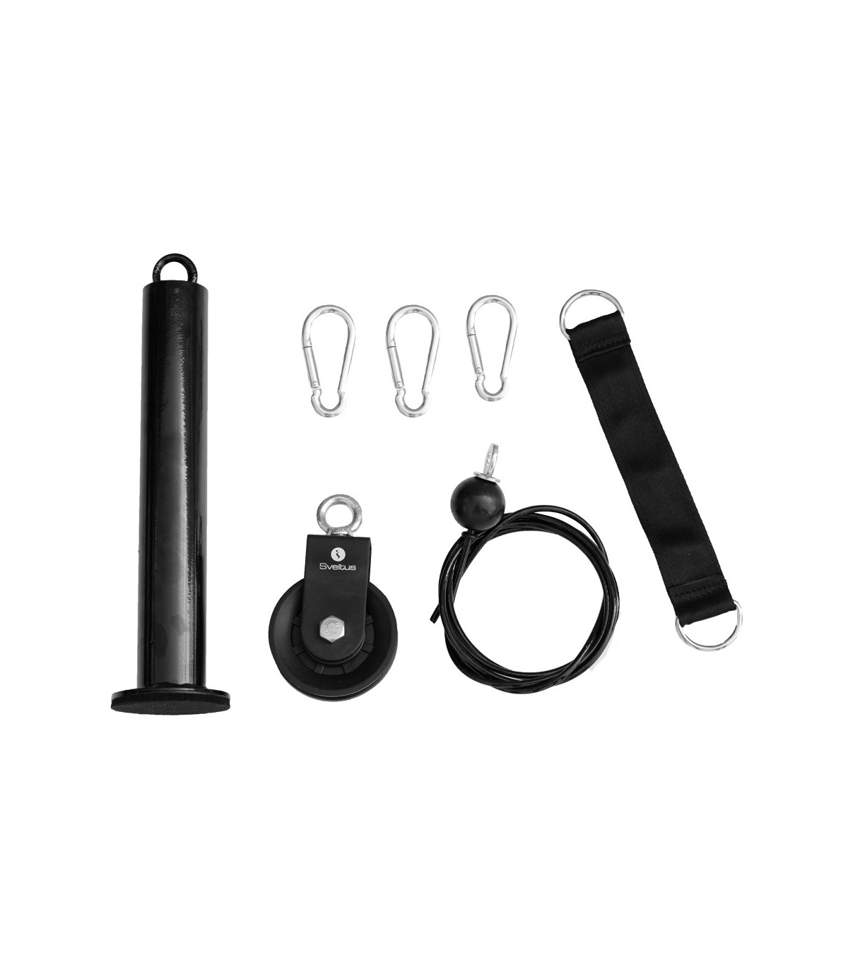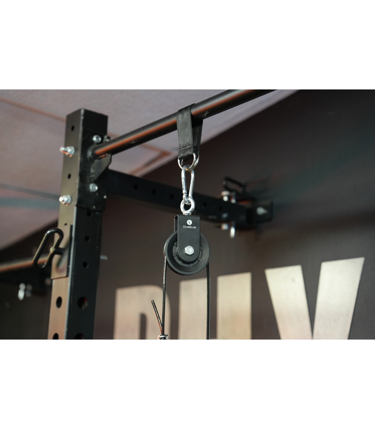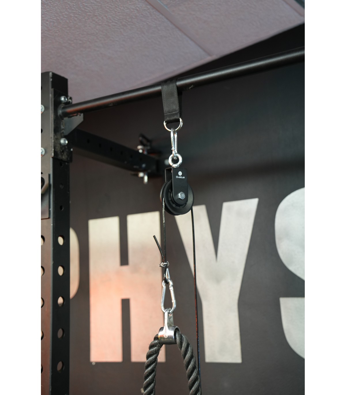 L’accroche avec mousqueton de l’autre côté du câble vous permettra d’utiliser n’importe quel accessoire pour votre pratique : corde triceps, barre de tirage triceps, barre de tirage droite, barre latérale de tirage dorsal…