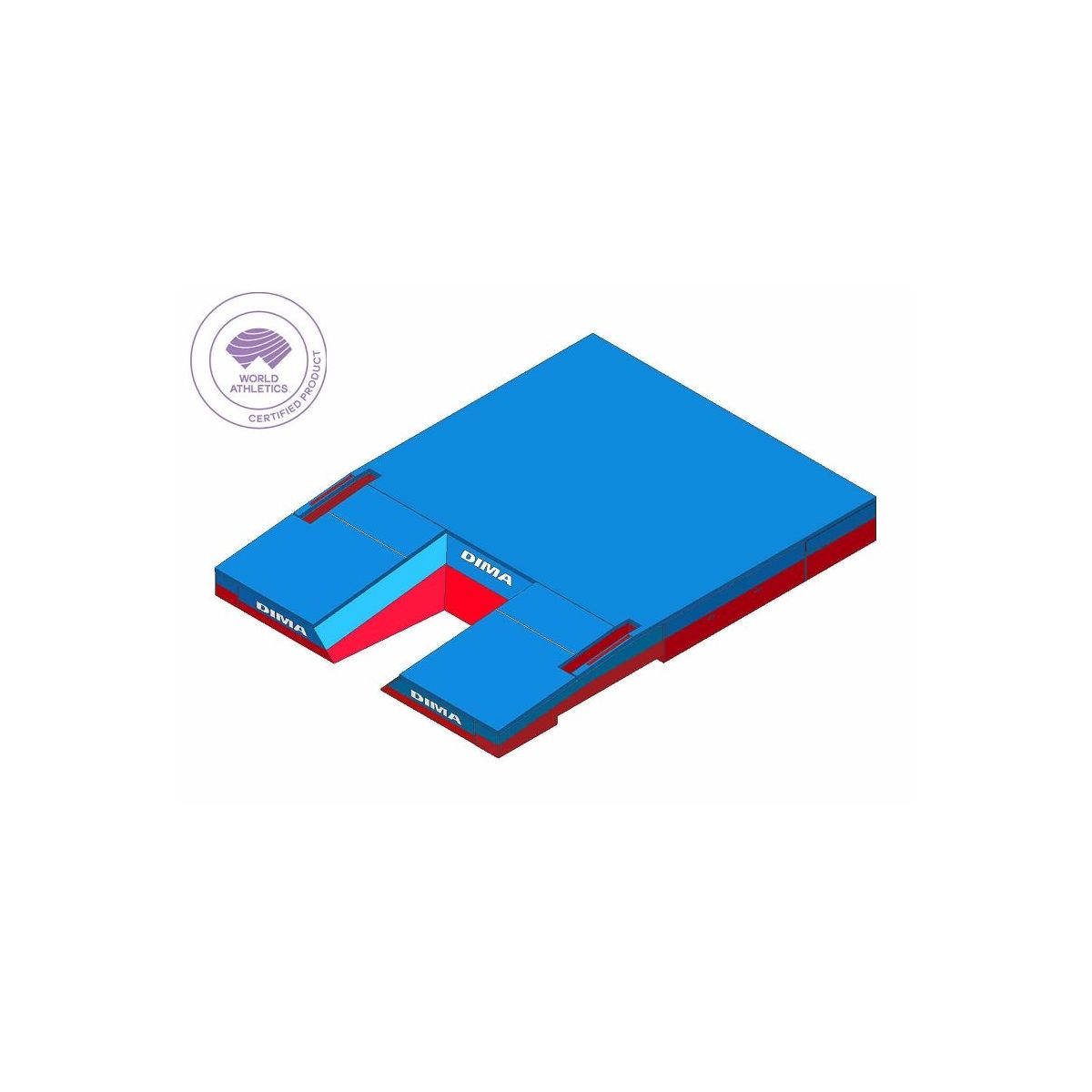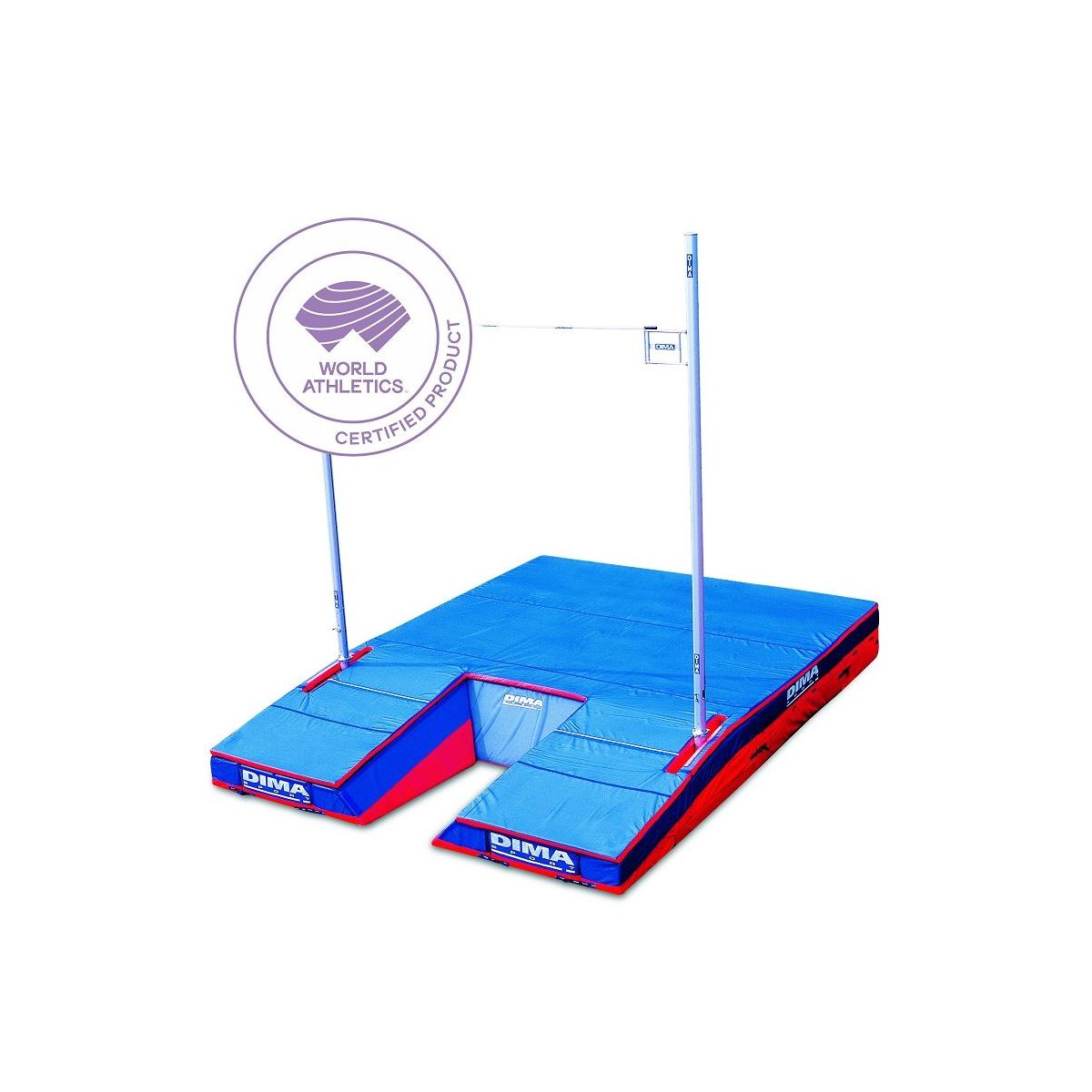 Le matelas perche International est un sautoir haute compétition qui assure sécurité et confort de par sa qualité de réception et son design avec la protection des rails de poteaux perche intégrée.
