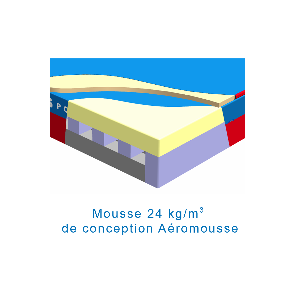 Composé de blocs aéromousse construits par assemblage de plaques et bandes de mousse polyuréthane grande qualité, de portances différentes.