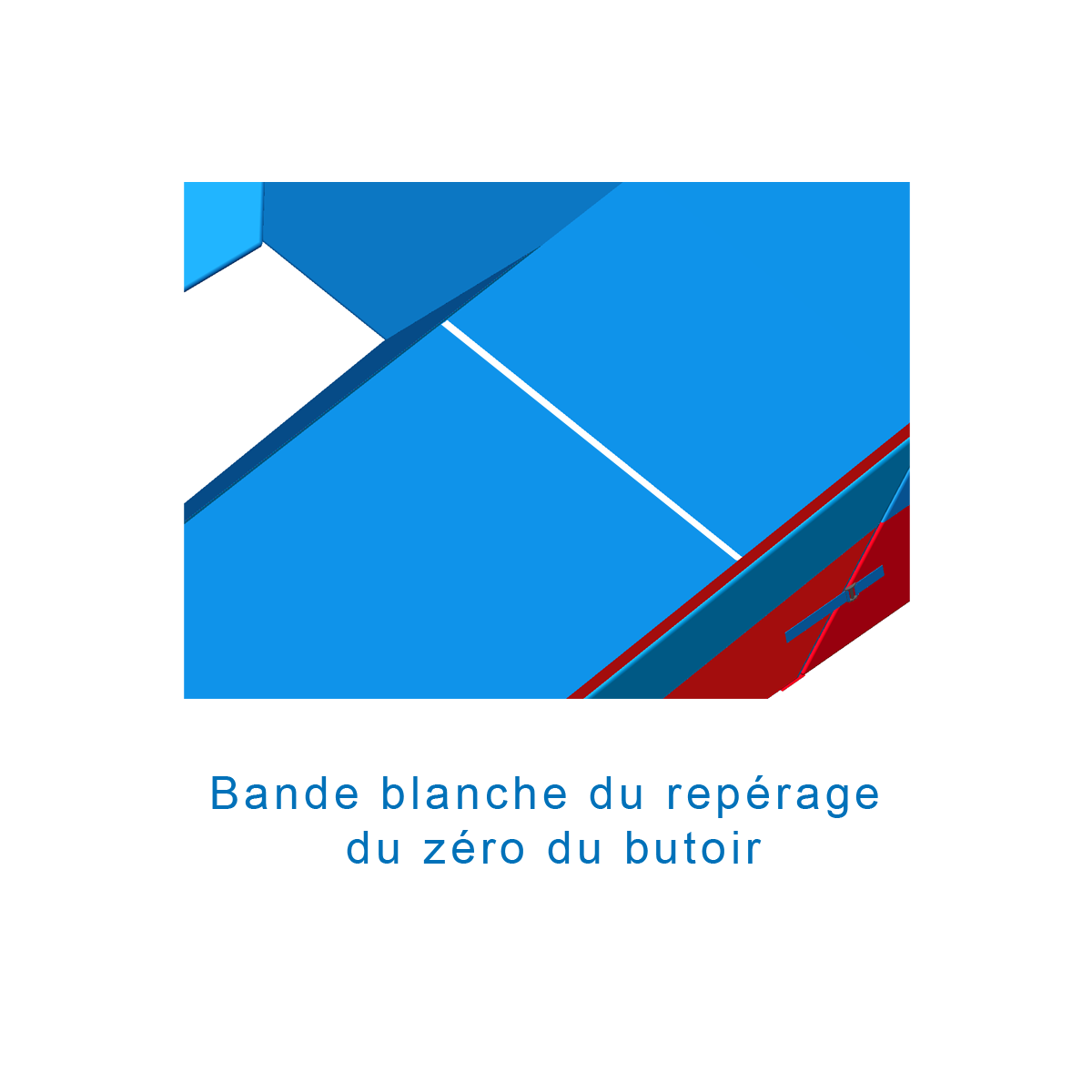 Entourage et fond en bâche PVC 650g/m2, retour et dessus en tissu antipointes (enduit fil à fil puis tissé pour une meilleure souplesse et résistance).Bande blanche fixée par velcro sur le dessus du sautoir pour repérage de la ligne du zéro.