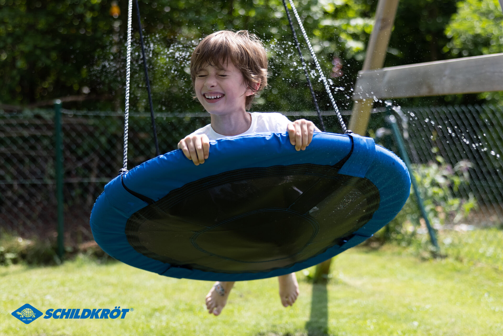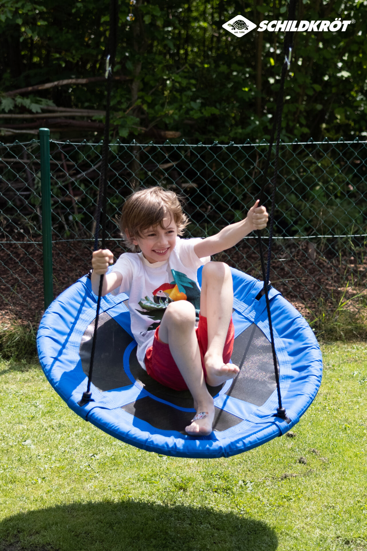 La balançoire nid Schildkröt avec siège fermé (Ø 90 cm) en maille plastique durable offre suffisamment d’espace pour se balancer et se détendre en toute sécurité?