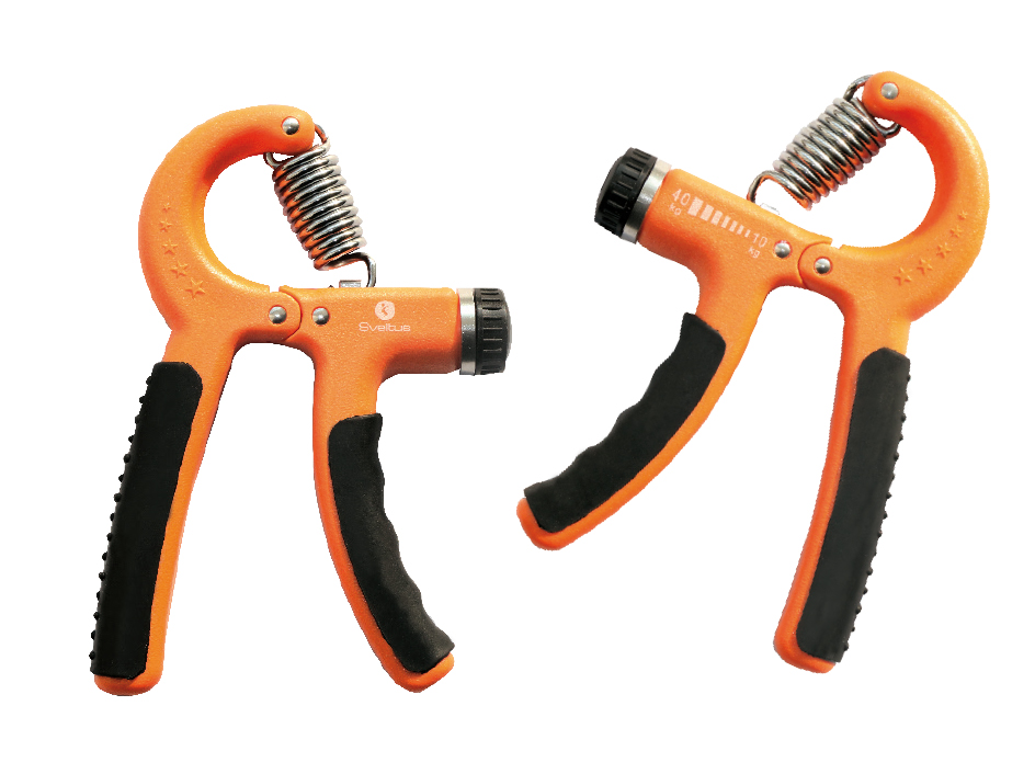 Les poignées en caoutchouc assurent un grand confort pendant l’exercice de renforcement des muscles de la main et des avantbras.
