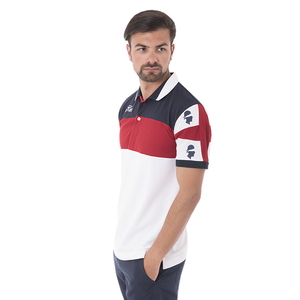 Le polo reprend le drapeau sarde sur la manche.