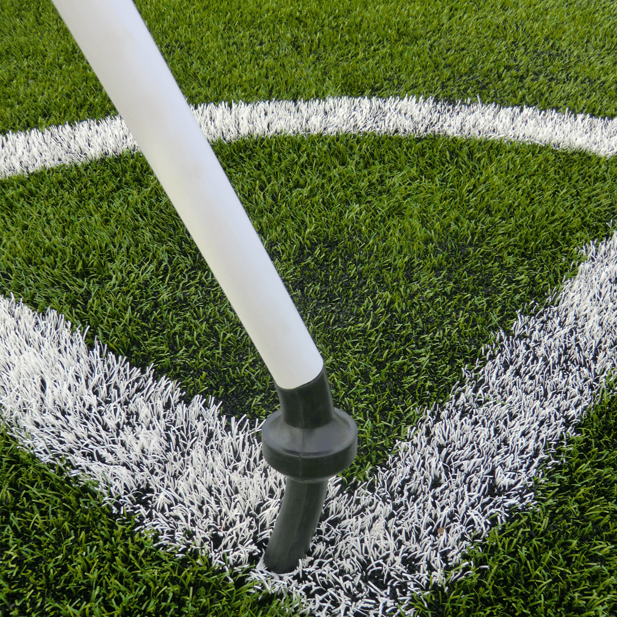 Poteau réglementaire en tube PVC avec manchon noir articulé en caoutchouc.