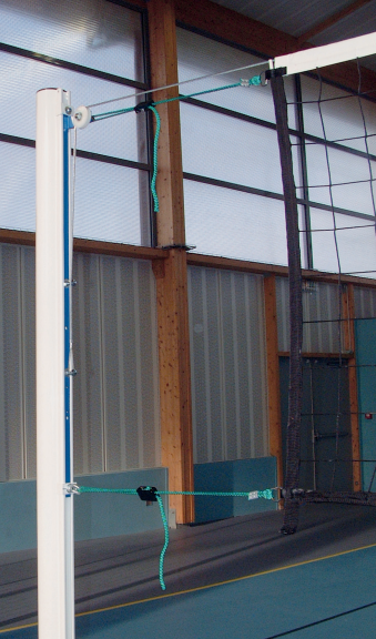 POTEAU VOLLEY-BALL CENTRAL Ø 90 mm ACIER G+P – AVEC CABESTAN AVEC ENTRETOISE SOUDEE POUR MONTAGE TREUIL