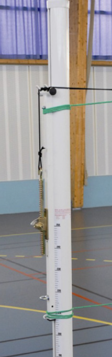 Le réglage de la hauteur (5 hauteurs possible) de filet se fait par réglette coulissante le long du poteau.