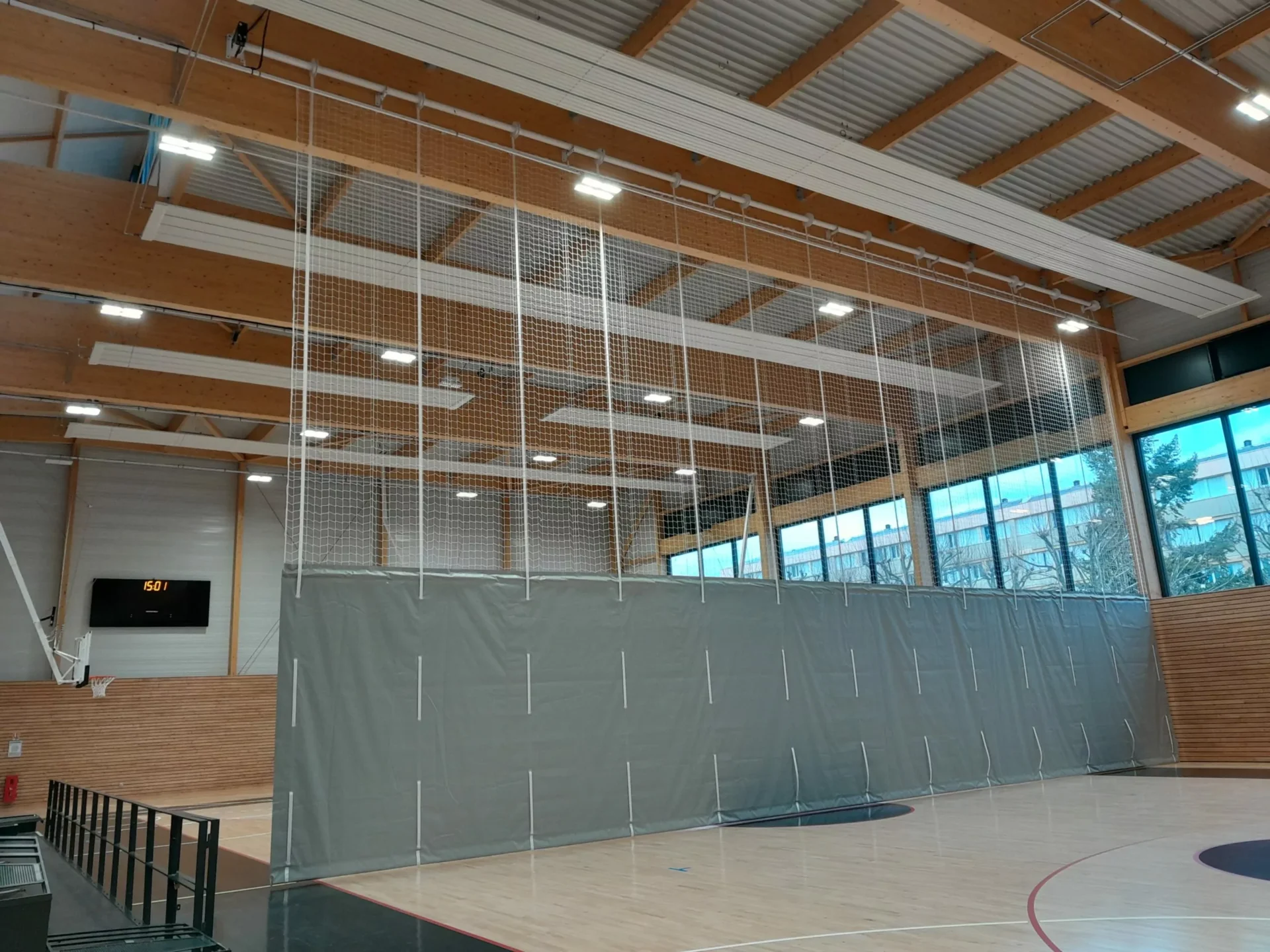 Id?al pour s?paration de salles de sports et salles polyvalentes. Pratique simultan?e de plusieurs activit?s dans un m?me espace tout en assurant la s?curit? des zones sp?cifiques (ex : mur d?escalade et terrain de sports)