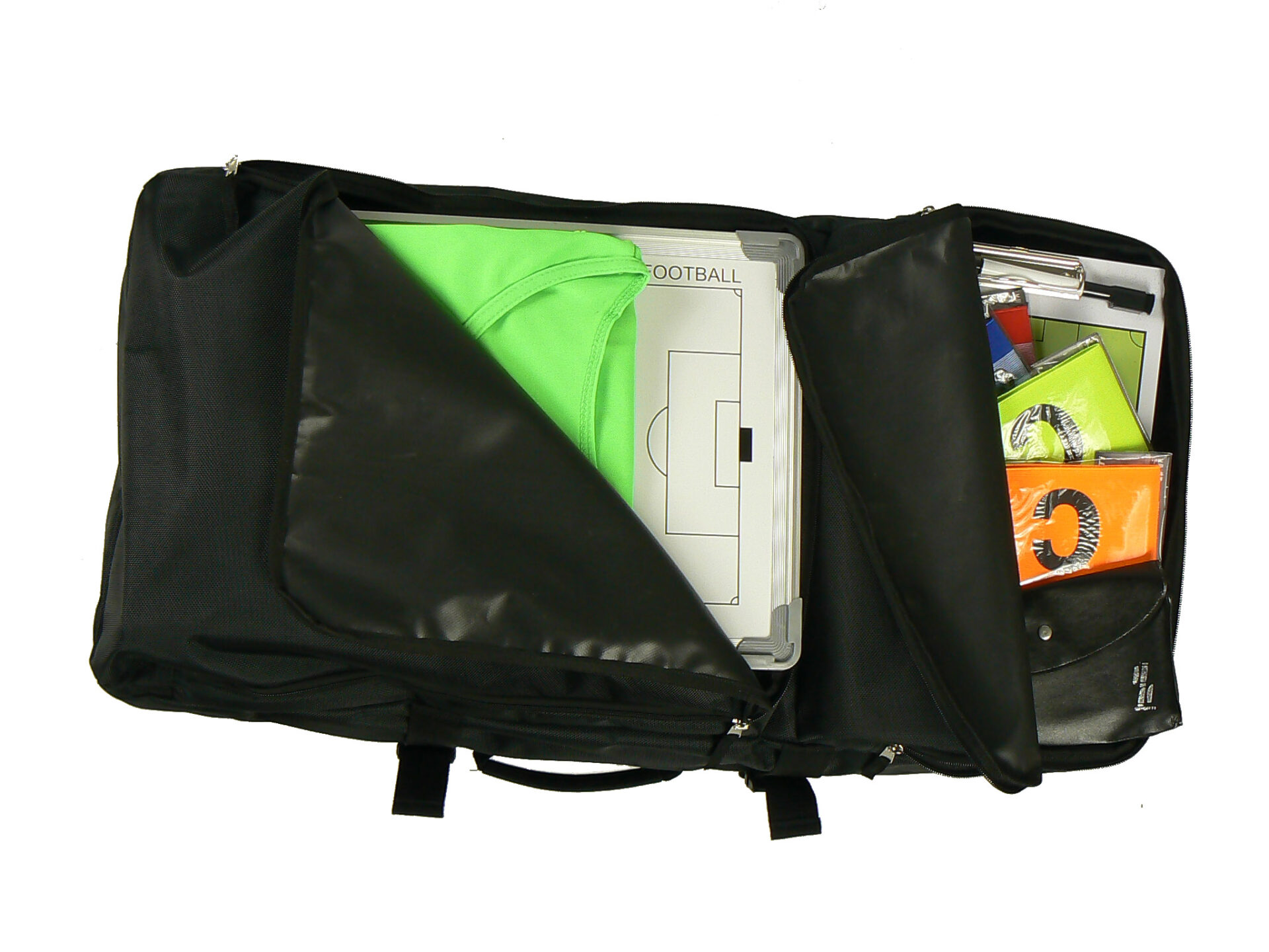 100% polyester 1680 deniers haute qualité et doublure renforcée.