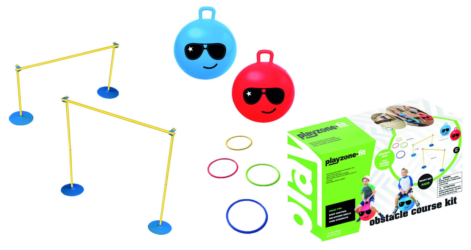 L’ensemble de course d’obstacles Playzone-Fit est l’activité idéale pour le jardin, les anniversaires d’enfants ou tout moment de jeu en plein air. Parfait pour organiser des compétitions et relever des défis amusants !