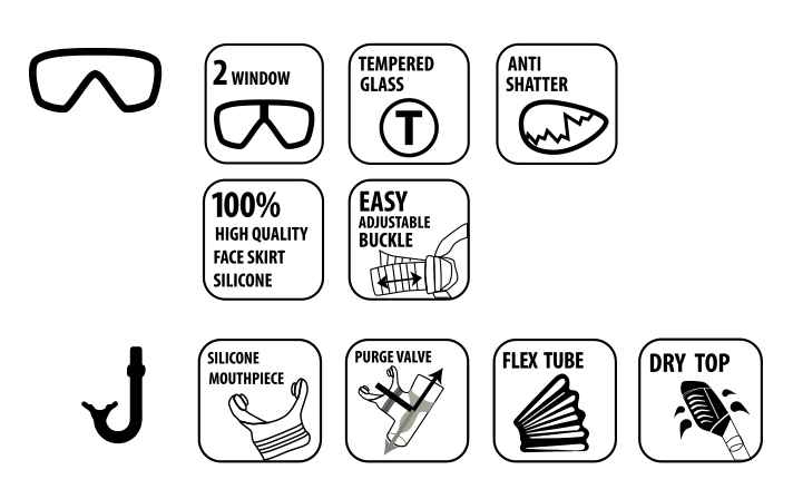 Set de plongée – Tuba Dry Top & Masque double lentille