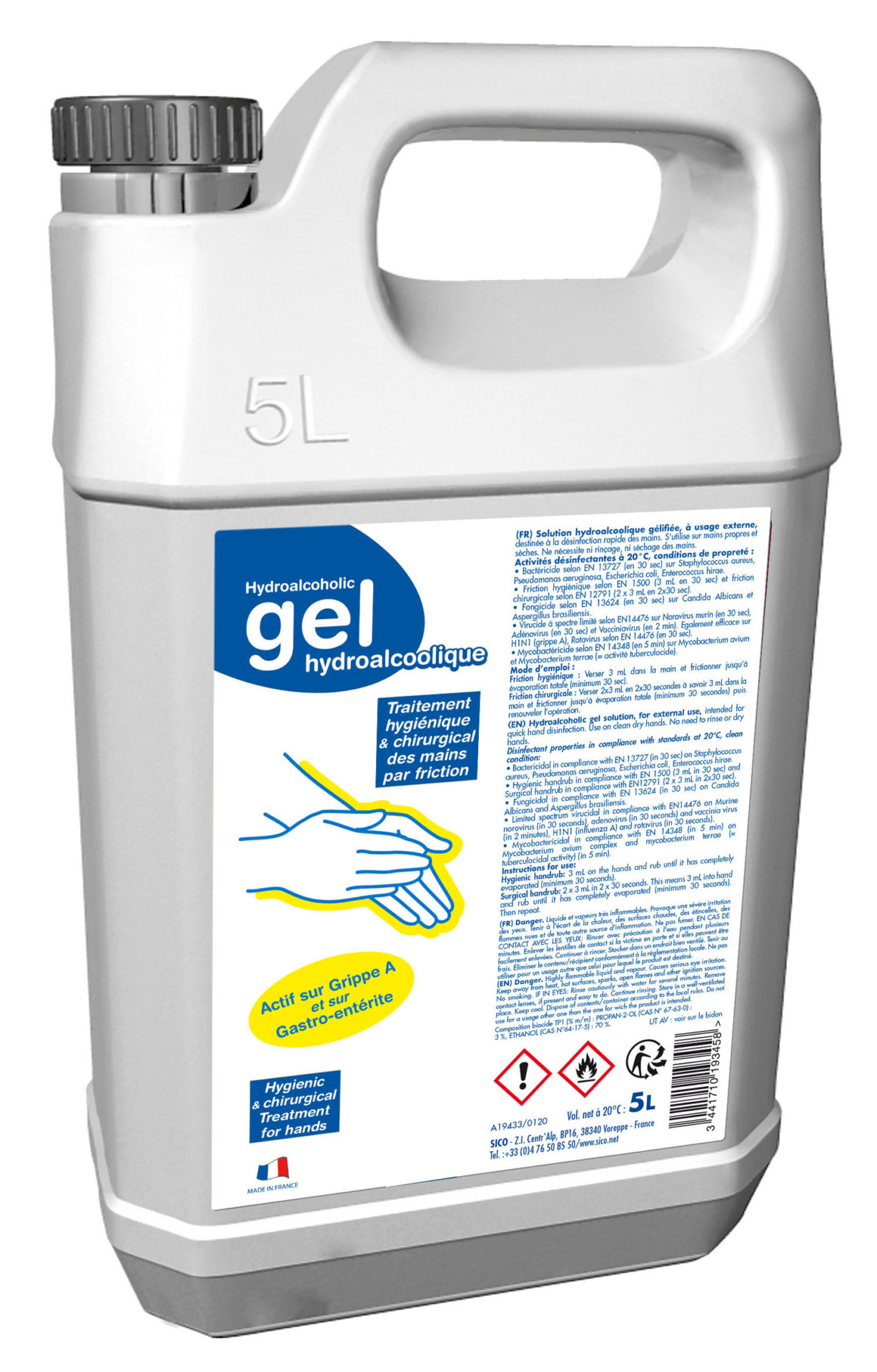 + 2 BIDONS DE 5 LITRES DE GEL HYDROALCOOLIQUE