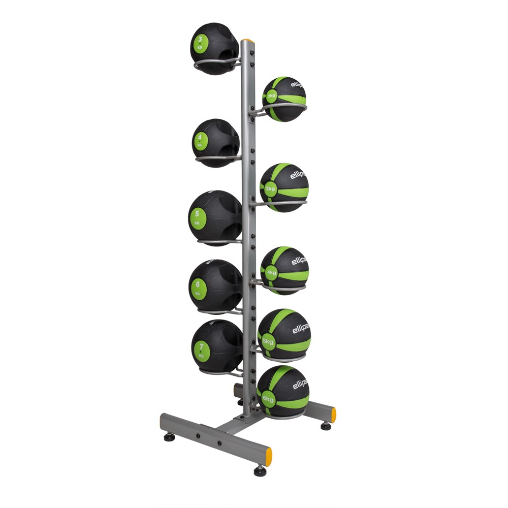 Support double pour 10 medecine balls. 5 de chaque côté.