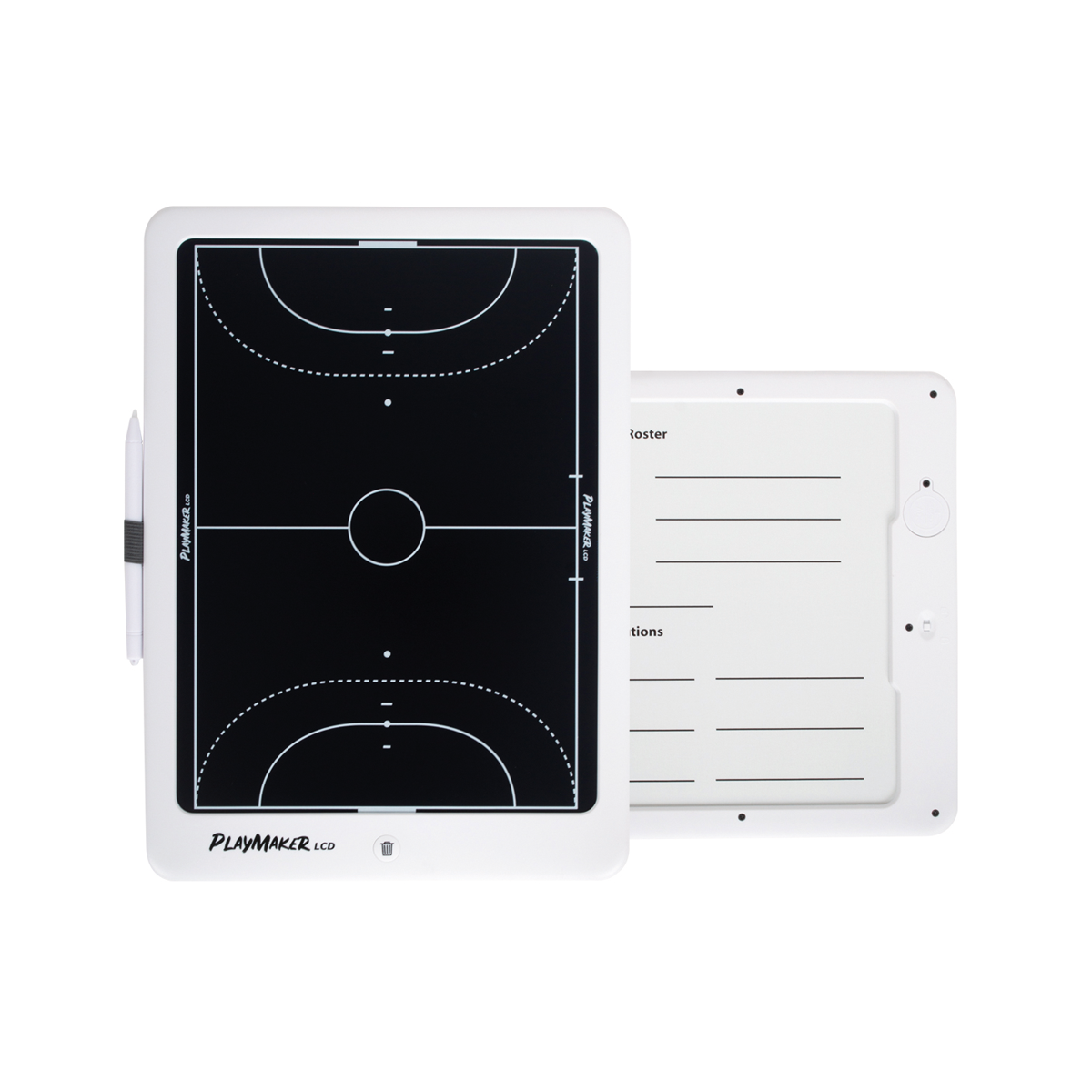 Cette tablette est équipée d’un écran LCD offrant une surface d’écriture très nette et lumineuse. Une fonction « d’effaçage instantanée » vous permettra d’effacer votre tablette en appuyant simplement sur un bouton et un autre bouton vous permettra de verrouiller ou déverrouiller l’écran. La tablette comprend également au dos, un tableau blanc effaçable à sec pour vos compositions d’équipe. Livré avec un stylet d’écriture et son manuel d’utilisation. Disponible en 2 formats : 14’’ L.32,5 x l.23,5cm avec une surface d’écriture de 20×27,5cm, fonctionne avec une pile incluse CR2025 et 20’’ L.47 x l.32cm avec une surface d’écriture de 27,5×38,5cm, fonctionne avec 2 piles incluses CR2032. Existe en 5 sports différents (selon le format) : Basketball, Football, Handball, Rugby et Volleyball.