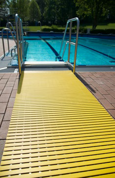 Tapis de sol à lames en plastique pour environnements humides et piscines.