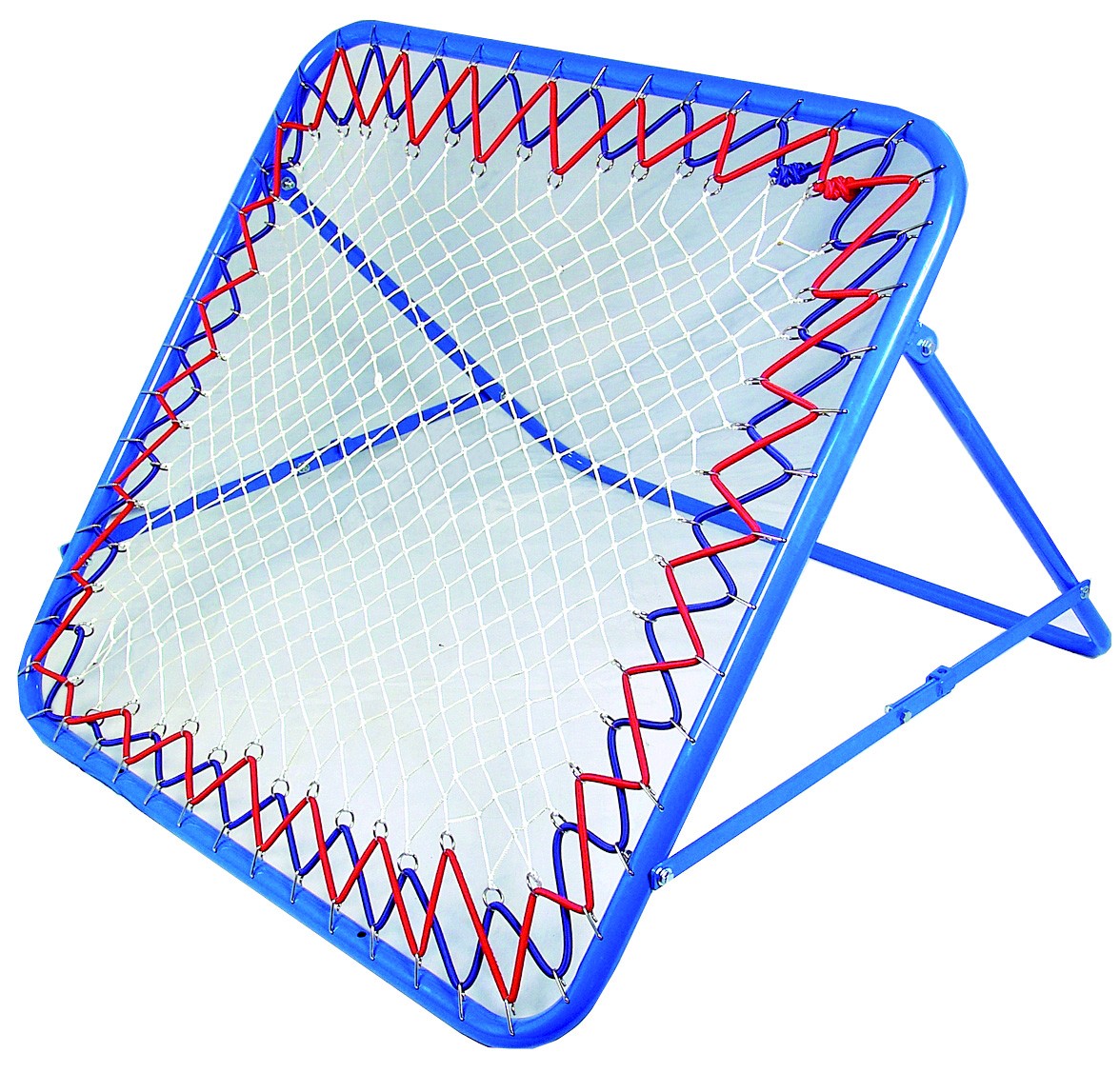 Cadre de section 32mm en acier peint bleu avec un filet nylon fixé par sandows.