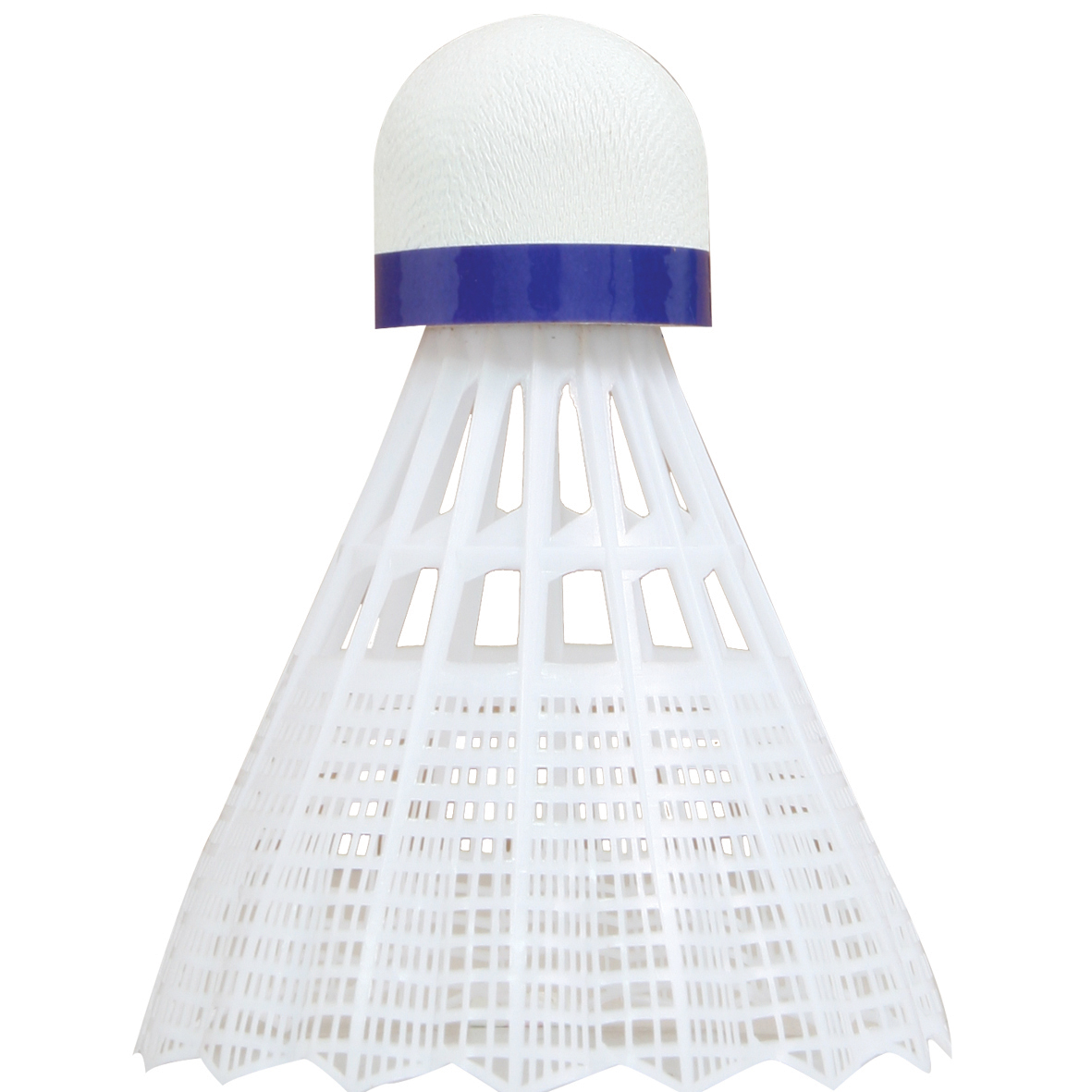 Volant en nylon, navette : blanc, vitesse : bleu-moyen, base en liège, tube de 6pcs.